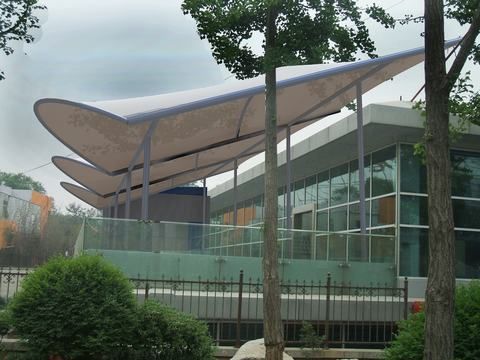 除了一般雨蓬不可比擬的實(shí)用、耐用、遮風(fēng)擋雨的功能外,膜結(jié)構(gòu)雨蓬更是一座雕塑,一件藝術(shù)品,給人美的視覺享受。其柔美,其曲線,其剛?cè)岵?jì),其豐富造型,其潔白無瑕,讓人眼前一亮,回味悠長(zhǎng)。